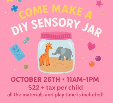 Join us at Party Barn Play Adventure on Saturday, October 26th from 11am–1pm for a fun and creative sensory experience! Each child will get to make their very own sensory jar filled with kinetic sand and animal figures — perfect for imaginative play and calming fun.