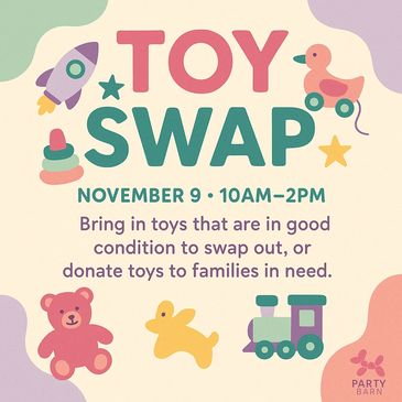 Come swap, donate, and make another family’s holiday brighter — all while giving your little ones something new to love!